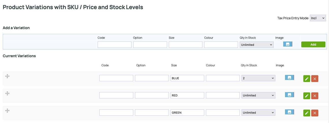 You can also edit the Stock Levels for your variations via the STOCK tab. Using this approach will allow you to SET, ADD or REDUCE stock levels if your stock levels are set to a finite value.